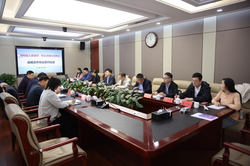4 月 12 日上午,固阳县人民政府与包头市碳计量中心战略合作协议签约仪式在包头师范学院隆重举行。生态环境部卫星环境应用中心首席专家、我校黄河几字湾研究院院长高吉喜,固阳县人民政府副县长杨俊枫以及我校党委书记韩伟新出席签约仪式。